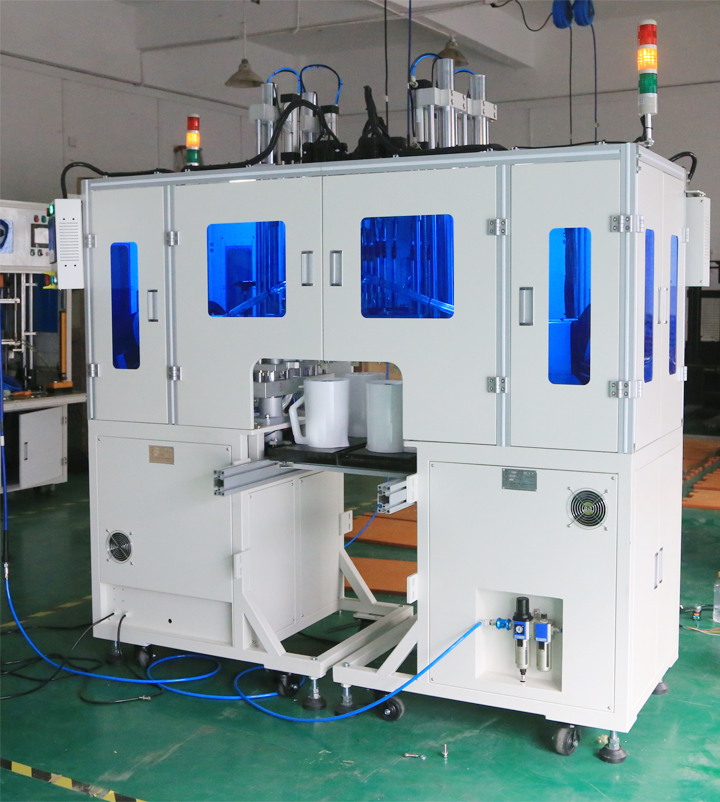 電熱水壺外殼自動鎖螺絲設備,坐標式機械臂多頭同時鎖附4顆產品螺絲。可直接放置在生產流水線上,通過裝配線的滑動,使產品流動到對應位置。鎖螺絲機設備自動定位鎖附產品螺絲后,滑到下一步生產工序。快速實現自動化生產。